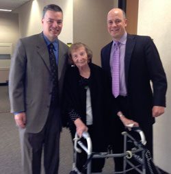 Charles Slane and Rich Ruohonen just obtained a $2.3 Million verdict today for this wonderful 91-year old woman who lost her leg in a crash. American Family denied the claim saying it was her fault with only $50,000 in coverage. They blamed Jean even though their insured plead guilty for dropping a mattress on the highway that caused the crash.